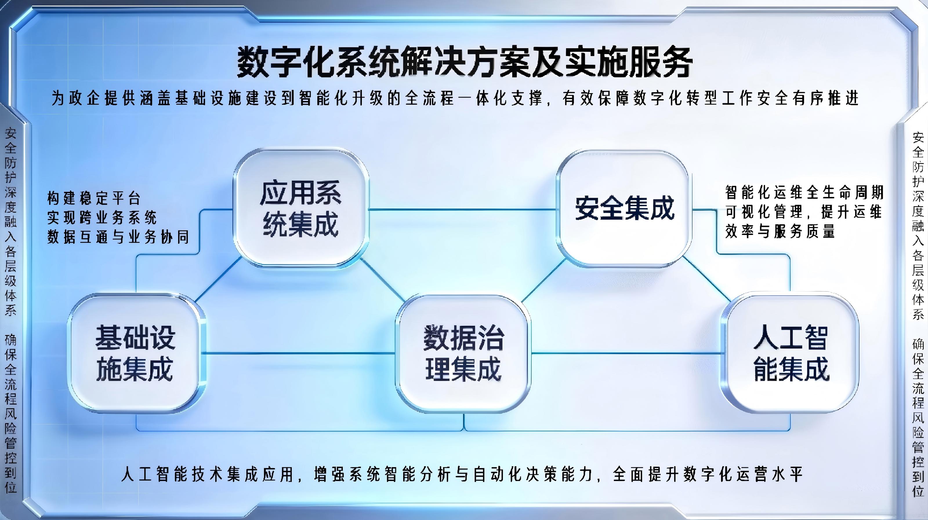 公司提供涵盖信息化体系架构、信息化软硬件设施、网络安全系统体系、网络安全整体解决方案、合规建设等全流程、全场景的数字化集成服务。同时,公司针对大模型应用中的软硬件部署、内生安全风险与外部攻击威胁,提供涵盖“部署—使用—运营”全链条的解决方案与安全防护能力,实现全供应链的安全加固,为大模型应用提供安全、稳定、可靠的运行环境。